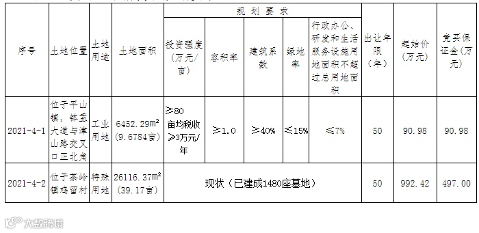 上述两宗土地使用权挂牌期限截止到3月29日。