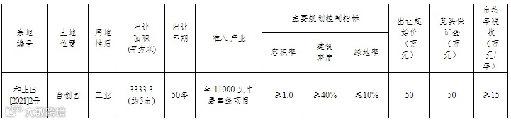 位于和县台创园的和土出[2021]2号地块面积约5亩,计划用于发展屠宰产业。挂牌时间为4月6日至2021年4月16日。