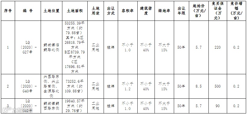 临泉县的3宗地块均为工业用地,将以挂牌方式出让,申请人可于3月18日到4月19日提出书面申请。