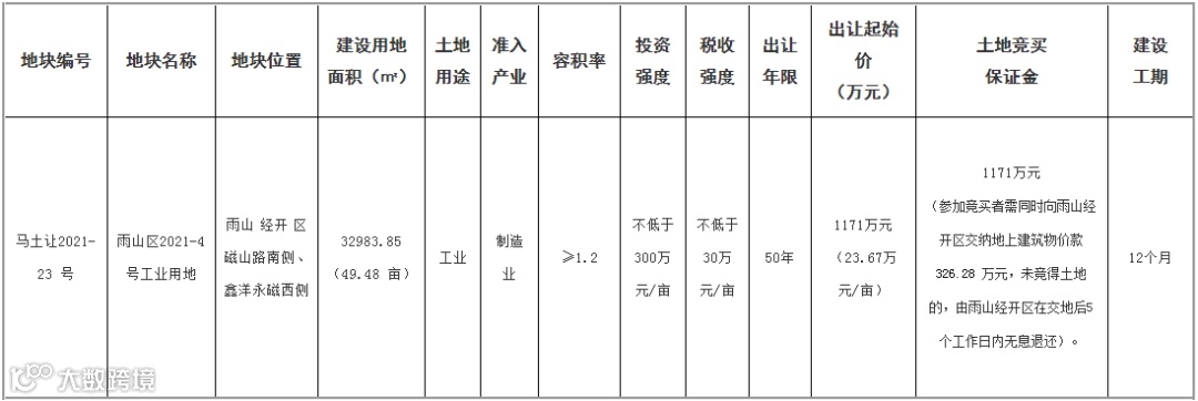 马鞍山市将挂牌出让雨山经开区磁山路南侧、鑫洋永磁西侧雨山区2021-4号工业用地使用权,申请人可于 5月31日7月1日将报名资料扫描照片发送至规定地址。