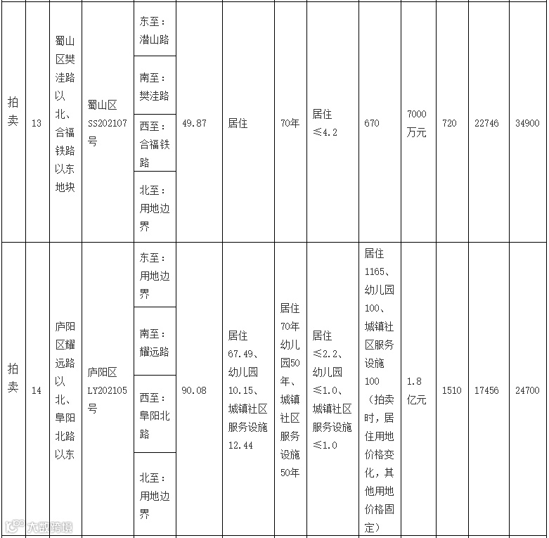 合肥市将拍卖出让24宗土地使用权,竞买人可于5月12日到5月30日上传报名资料,并携带书面资料进行资格预审。