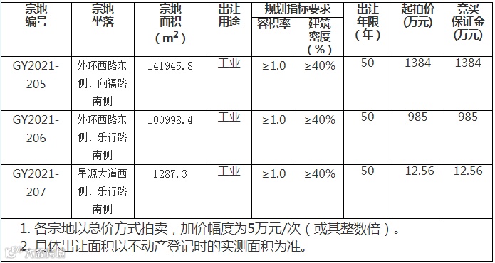 3宗地均为工业用地,使用权出让年限为50年,招拍挂日期为3月1日到3月22日。
