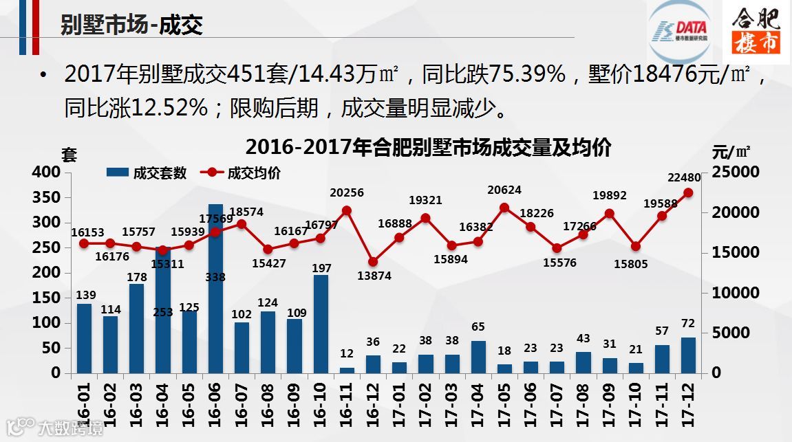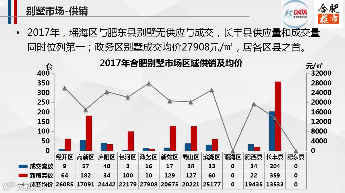 由于限购政策导致合肥市区别墅市场整体需求下降,别墅供给也相对减少。