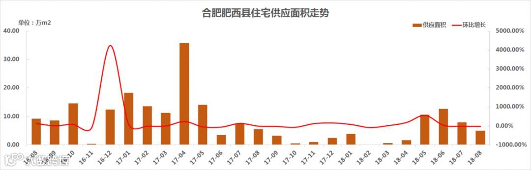 2018年8月份,肥西县共新增469套/4.89万㎡商品住宅,环比下跌38.17%。