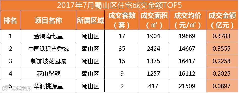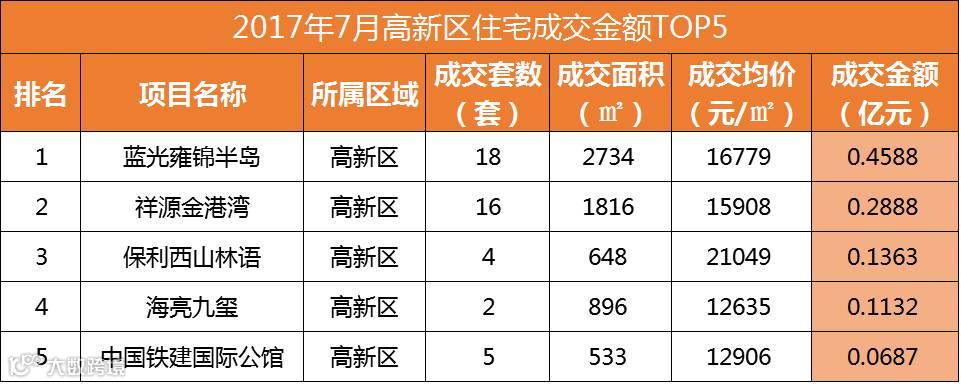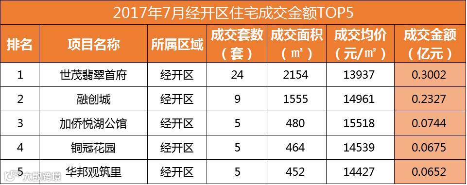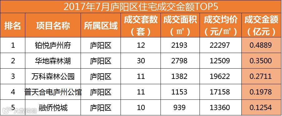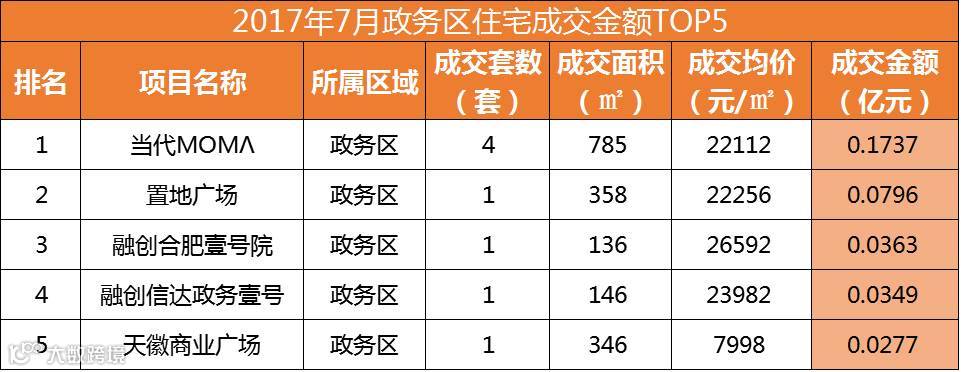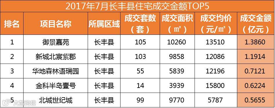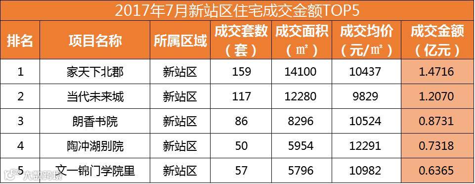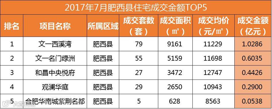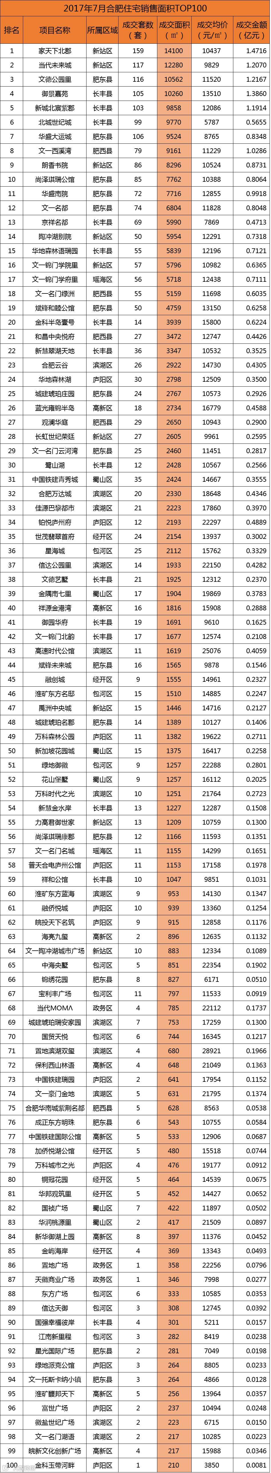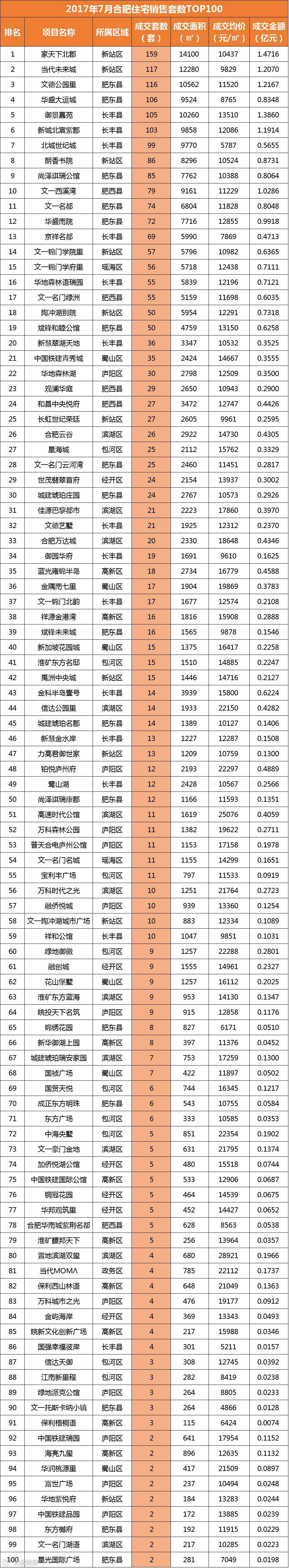 从销售套数来看,新站区进军TOP2,分别是家天下北郡销售159套和当代未来城销售117套;并且TOP10中新站区、肥东县和长丰县各进军3盘。