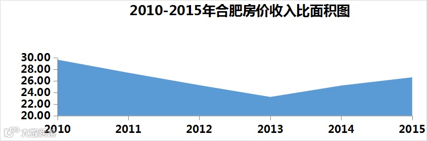 从房价收入比来看,标准的房价收入比在4到6之间,而2010-2015年6年期间合肥的房价收入在20-30之间,这完全超过了标准范围。从房价收入图可以看到,2010-2013年,住房压力有所缓和,2013年达到最低值23.23,但是相对于标准值来说,还是很大,2013年后房价收入比又开始增加,表明房地市场的泡沫期也越来越大。