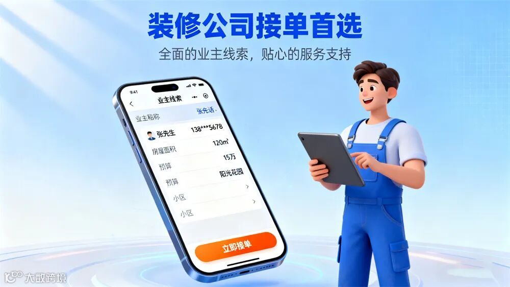 装修行业竞争激烈,工长、装修师傅、独立设计师都面临 “获客难、接单慢、客源散” 痛点 —— 传统获客成本高、效率低,线上渠道又难选。靠谱的装修接单平台,能精准匹配需求、提对接效率,轻松搞定线上获客。
