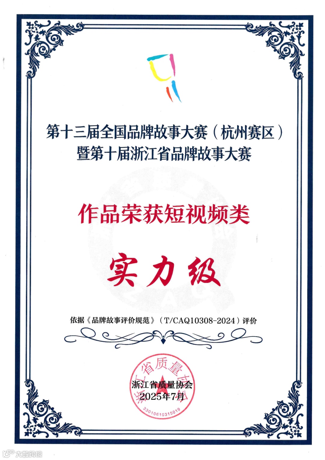 近日浙江省质量协会颁发“创新赋能高质量发展 品牌引领可持续未来”第十三届全国品牌故事大赛(杭州赛区)暨第十届浙江省品牌故事大赛获奖证书国检检测报送作品《微观之力 守护大国筋骨》荣获短视频类 实力级!