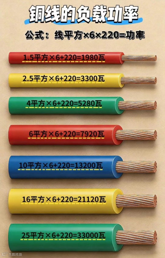 一张图说清楚铜线的负载功率。实际上课下来很多人会把这个铜线的负载功率搞混掉,今天花时间把这个问题一次性搞懂,这样就非常直观明白了,大家记得收藏。
