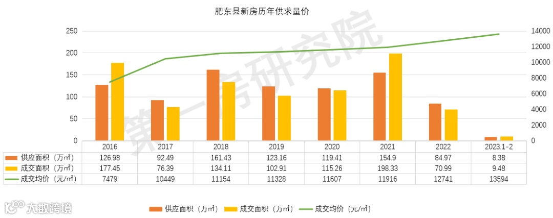 近5年肥东县新房市场成交量总体呈稳定态势,2022年受市场大环境下行影响,叠加新站、瑶海放开限购,市场遇冷明显,但历年成交均价稳步上涨。