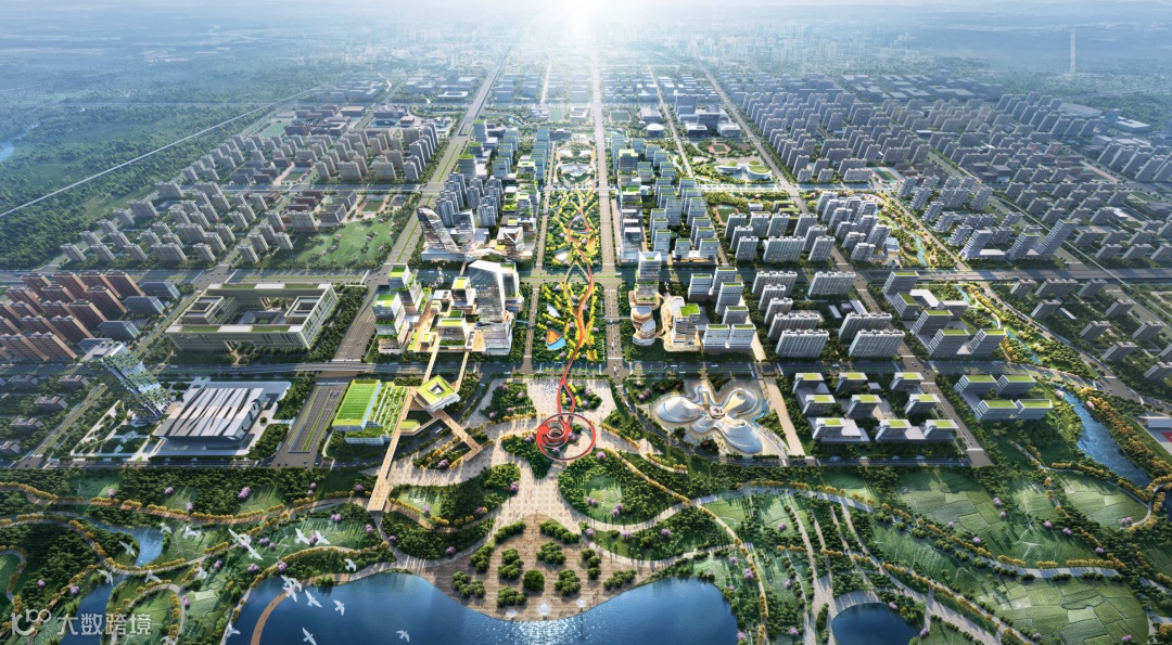 少荃湖城市副中心中央绿轴鸟瞰图
