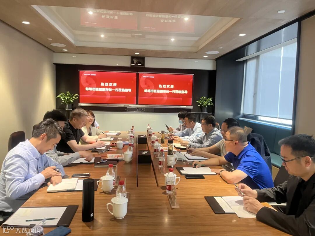 蚌埠市政府副市长张铭一行先对大家房产进行考察交流,大家房产集团执行总经理徐玉麟带领团队陪同接待。