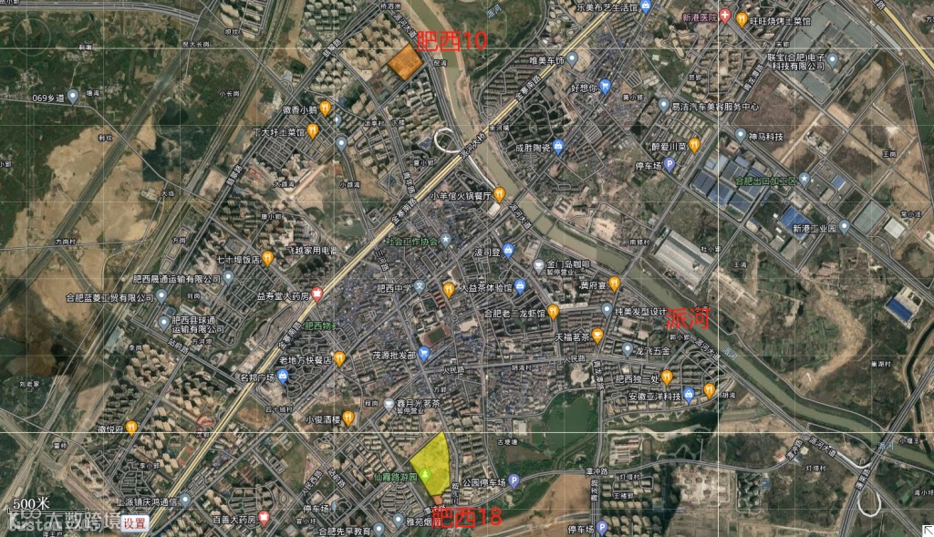 上派2个纯新盘,名邦肥西10号地块体量小、靠近派河,国信肥西18号地块在置地栢悦湾西侧。