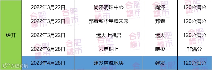 截至目前,经开共5宗地竞品质,除了皖投云启锦上非满分,其他4盘均为120满分竞品质。