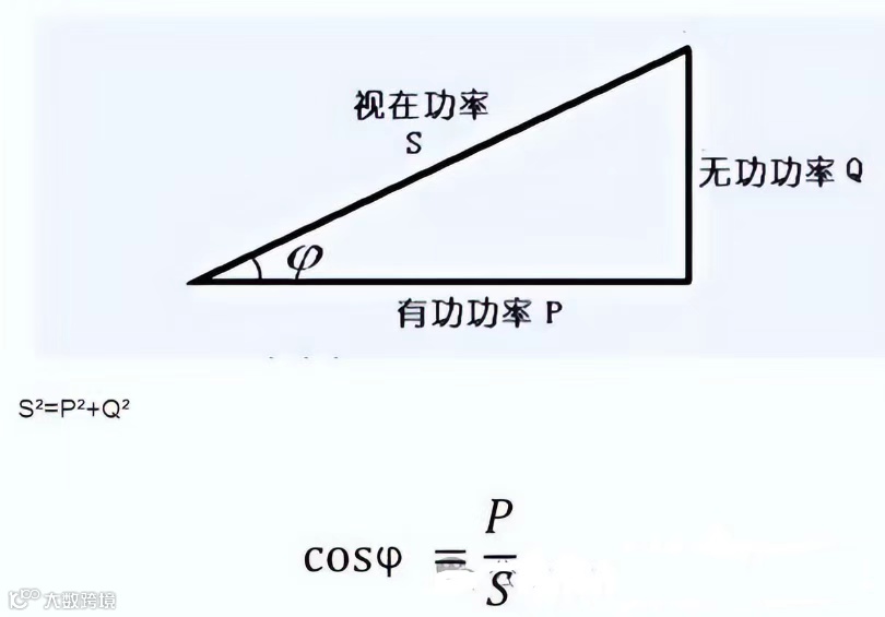 cosφ称为功率因数,也就是有功功率P与视在功率S的比值,功率因数cosφ的大小说明了有功功率占比的大小,也说明了其中无功功率的多少,在视在功率S一定的情况下,无功功率越多有功功率就越少。
