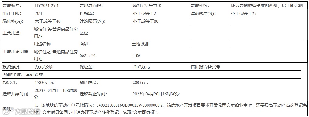 HY2021-25-1 号地块:2023年04月11日08时00分 至 2023年04月20日16时30分 ;