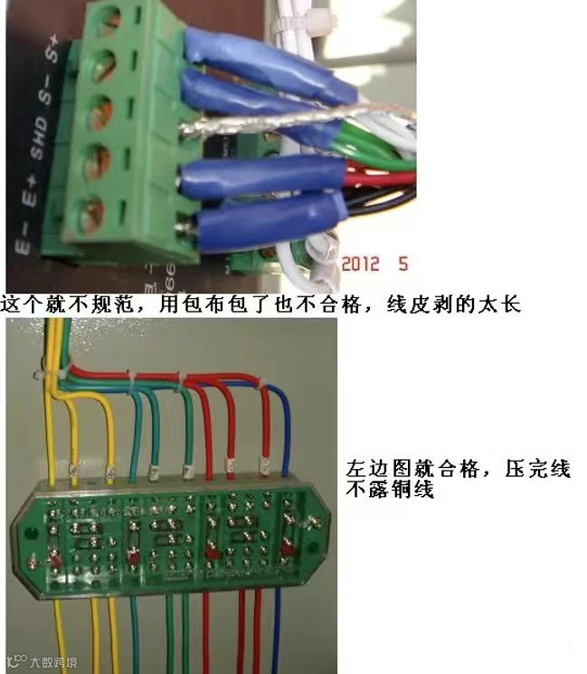 控制线路的接线线端处理必须使用专用铜接头和与其匹配的标准压接工具。在厂家中发现其控制线路线端的处理竟然使用斜口钳的刃部进行剪切式压接或使用其他钳具的受力平面进行平面挤压式压接连接导线端部一般应采用专用电线接头。当设备接线柱结构是压板插入式时,使用扁针铜接头压接后再接入。当导线为单芯硬线则不能实用电线接头,而将线端作成环形接头后再接入。