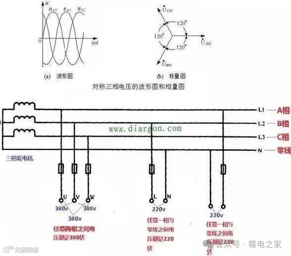 因此,额定电压为380V的电器,使用三根相线;额定电压为220V的电器,使用一根相线。