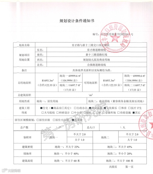 土地面积:122.55亩(居住105亩,商业17.55亩)