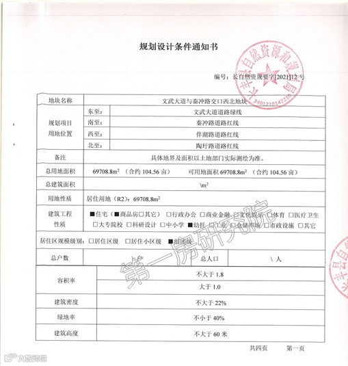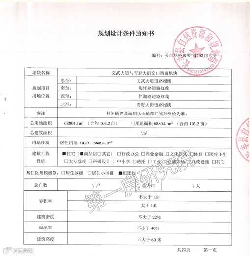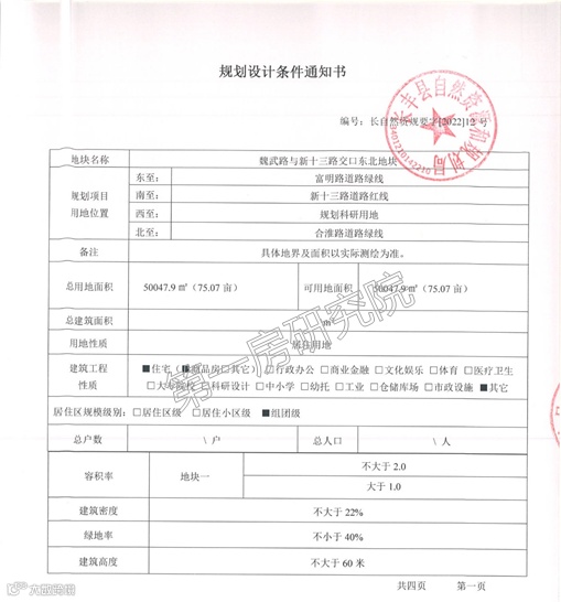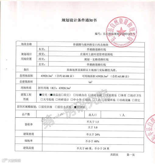 规划设计条件: