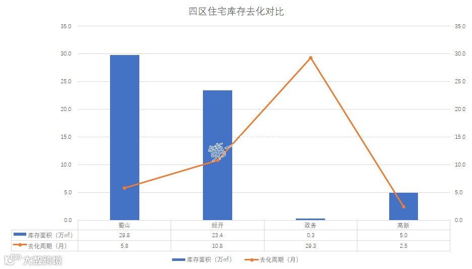 2、从市场来看,目前四区的成交量价主要集中在蜀山和经开两区,其中蜀山区运河新城板块汇聚了大量在售和待售项目,但因有一定的价格优势和板块价值提升潜力,所以相应的流速有一定的保证,蜀山区的去化周期比较低;而经开目前在售价格在2.45W左右,客群有一定的限制,流速受阻故而区域的去化周期超过10个月;而高新区目前在售项目稀缺,项目即开即罄,市场饥渴急需项目补充,所以从市场端来看,还是高新区地块成交概率较大。