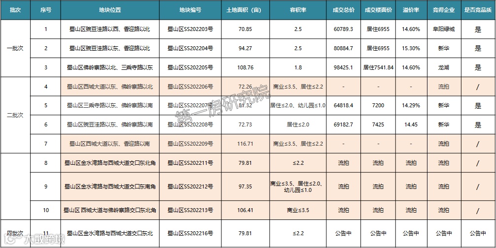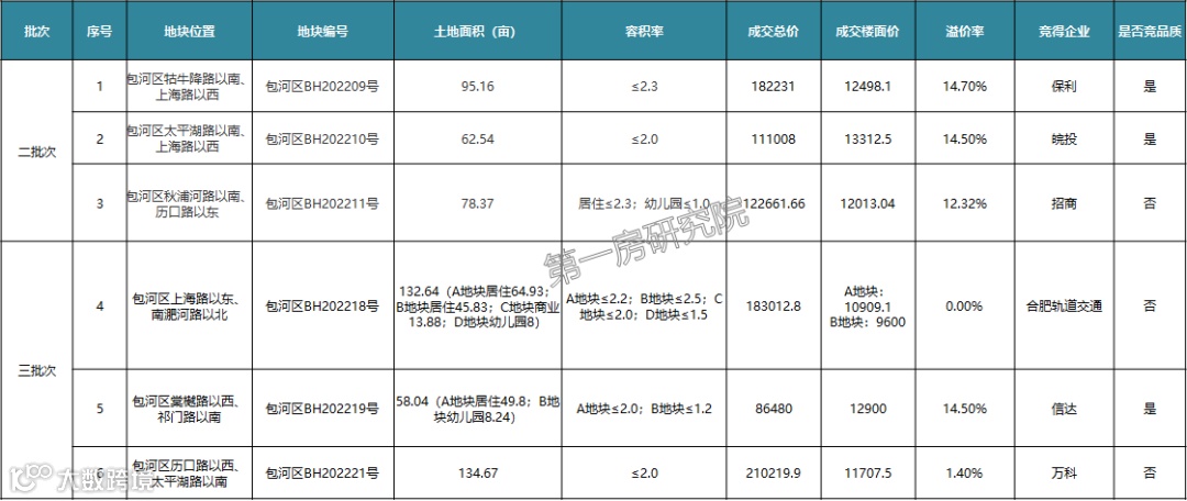 淝河板块2022年累计出让土地6宗,成交6宗,3宗满分竞品质+摇号成交。分批次来,二批次3宗除了招商11号地之外,其他两宗均为满分120分竞品质+摇号成交。三批次出让三宗,信达19号地16家参拍13家竞品质,热度赶超滨湖金融板块。