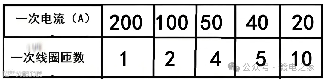 对于穿孔式互感器,经常标出一匝时的变比,就可以知道互感器的安匝数。如150/5的互感器一次安匝为150,因此穿3匝要保证仍是150安匝,一次电流就是50A,即50/5。如200安匝的互感器,一匝为200/5,2匝为100/5,4匝为50/5。