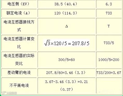 由于变比的标准化使得其实际变比与计算变比不一致,从而产生不平衡电流。