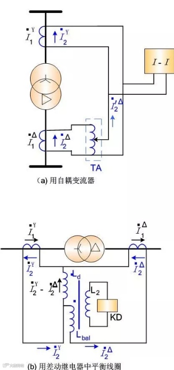 (4)减小变压器两侧电流相位不同而产生的不平衡电流采用相位补偿