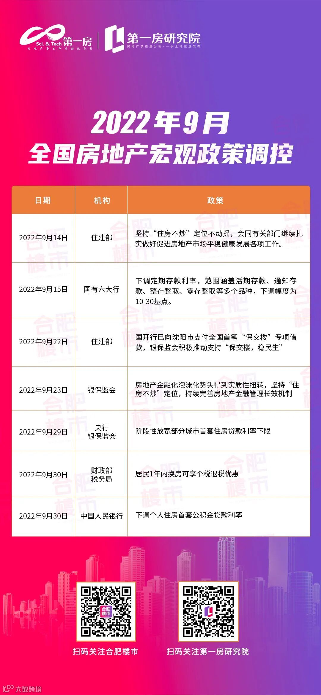 9月30日,财政部、税务局发布《关于支持居民换购住房有关个人所得税政策的公告》。自2022年10月1日至2023年12月31日,对出售自有住房并在现住房出售后1年内在市场重新购买住房的纳税人,对其出售现住房已缴纳的个人所得税予以退税优惠。个税减免是近20年来第一次出现此类政策,一方面是利好二手房,促进了二手房的流通性。另一方面,也表明了政府促进房地产市场平稳健康发展的决心。
