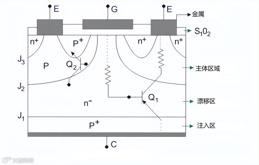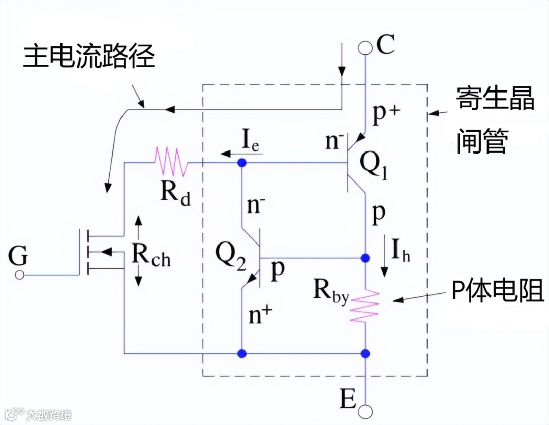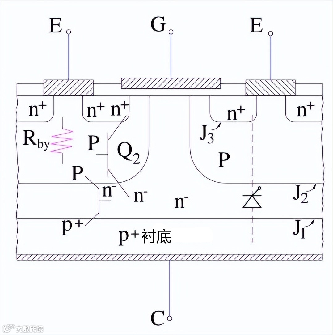 仔细检查 IGBT 的基本结构,可以得出这个等效电路,基本结构如下图所示。