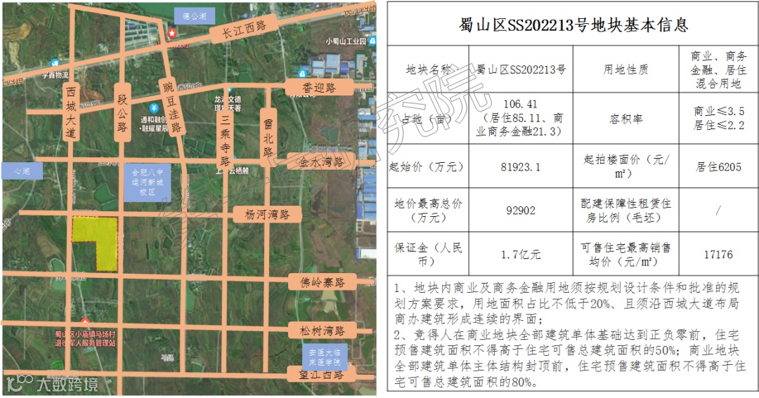 2、蜀山12地块毛坯限价17332元/㎡,相较于新华07地块上调2055元/㎡。