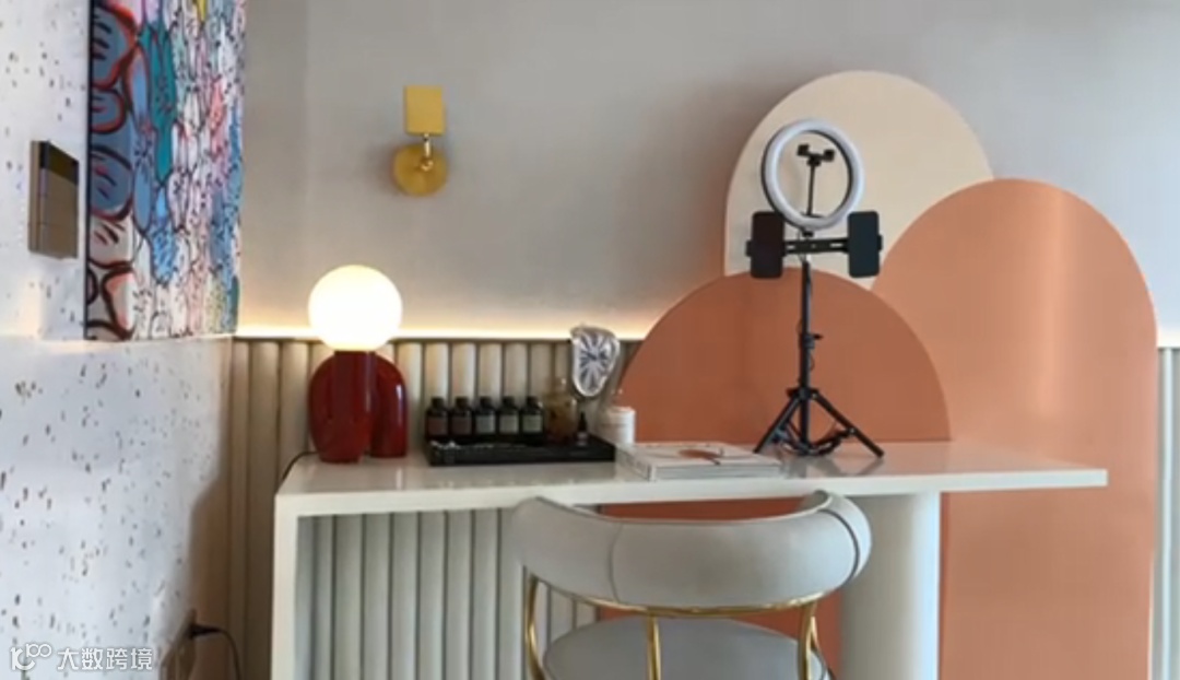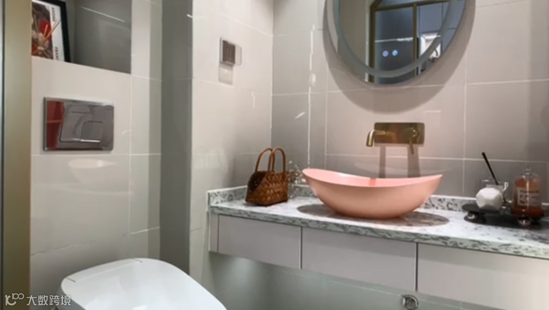 东望府设置了两个公寓样板间,都配置了字母门+电子锁。先来看看网红样板间!米白搭配粉红的装饰色调,进门左手边是卫生间,右手边是梳妆台;继续往里走,起居空间设置了一个简约的直播台,靠近阳台的一侧放置了一面全身镜和一个沙发,工作闲暇时间可以享受慵懒的午后时光!