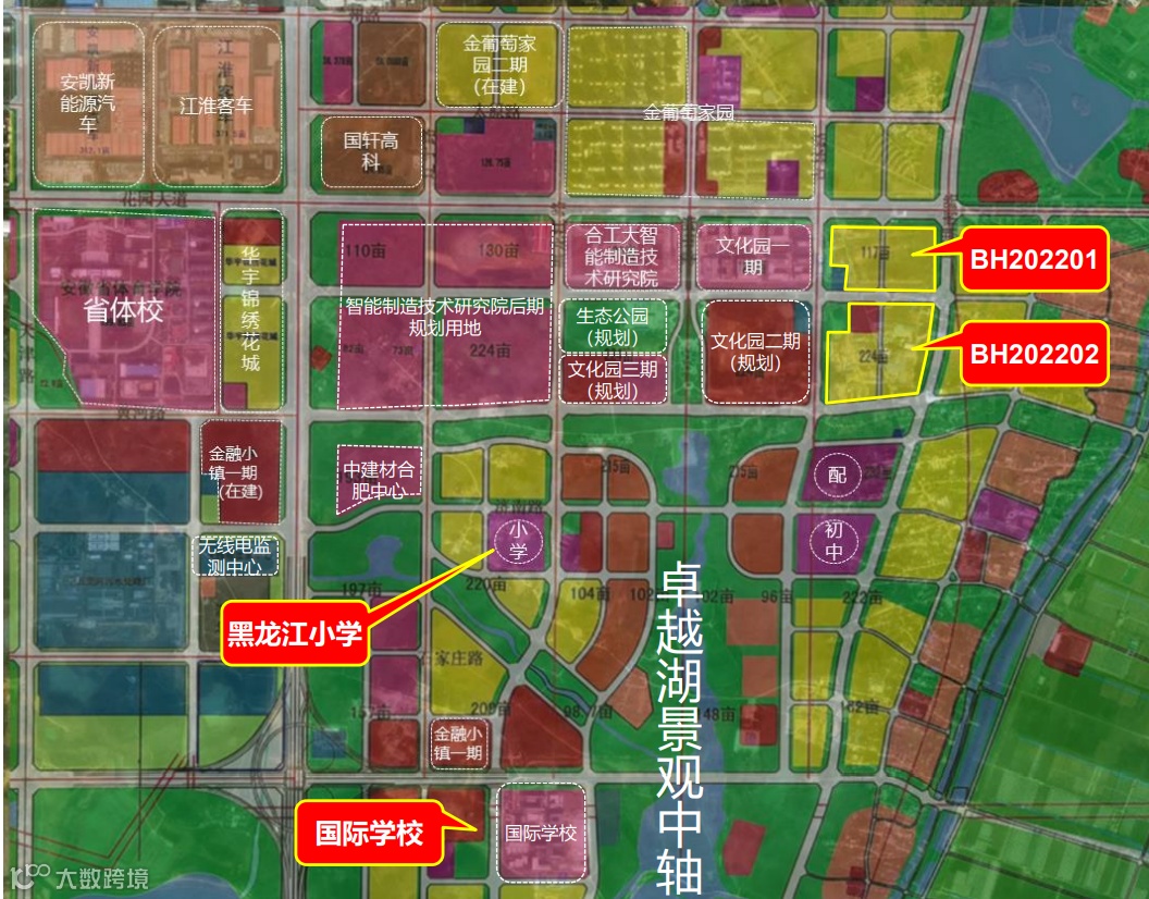 板块已落位的配套:文化园、合工大智能制造技术研究院、滨湖金融小镇、中建材合肥中心、合肥上海世界外国语学校、黑龙江路小学。