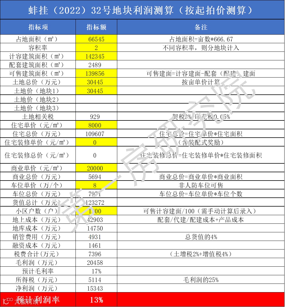 结合地块周边项目售价情况,按照地块起拍价测算,(2022)31号地块利润率约12%,(2022)32号地块利润率约13%。