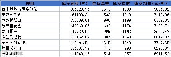 从数据看,成交第一的是绿地城际空间站,成交1503套,成交均价低至5864元/平,是典型的刚需盘,远低于目前宿州7500元/平的均价,从项目价格区间来看,政务片区及汴北片区价格水平居各片区前列。青山澜岛成交单价最高,达到8605元/平。