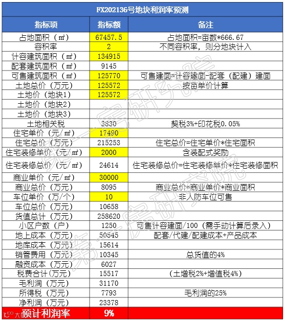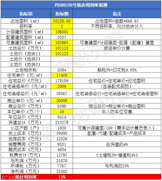 测算指标及利润结果仅供参考)