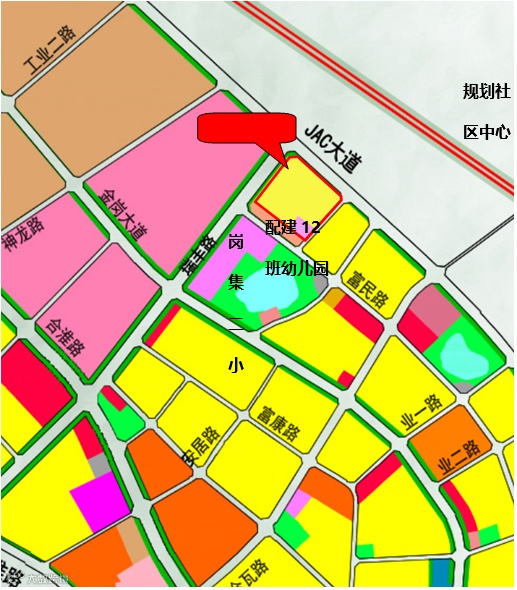 区位:岗集镇东至合淮路、南至育才路、西至复兴路、北至富民路;面积:130.39亩;用途:居住;容积率:2.2