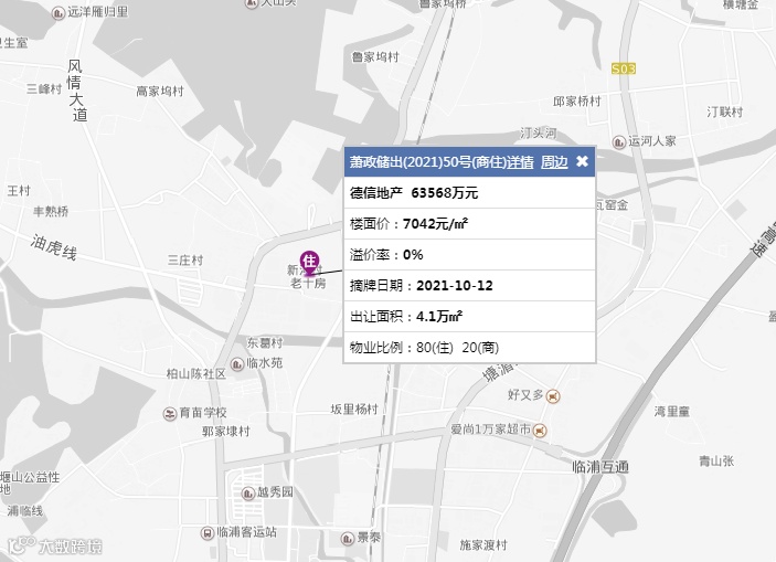 杭州市:萧政储出(2021)50号[商住、4.103万方(61.5亩)] 德信地产6.357亿元(1032.8万元/亩),底价拿地,楼面价:7042元/㎡,1.0<容积率≤2.2