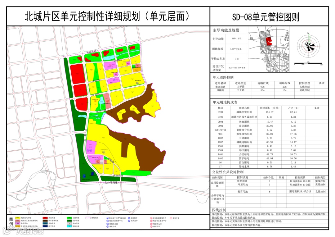 地块西侧规划了大面积商业用地,东、北两侧规划了较多公园绿地。周边大量居住用地,也有利于营造较为醇熟的居住氛围。
