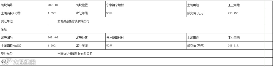 位于梅林镇田村村的2021-02号地块面积约1.2001公顷,由宁国协达橡塑科技有限公司竞得。
