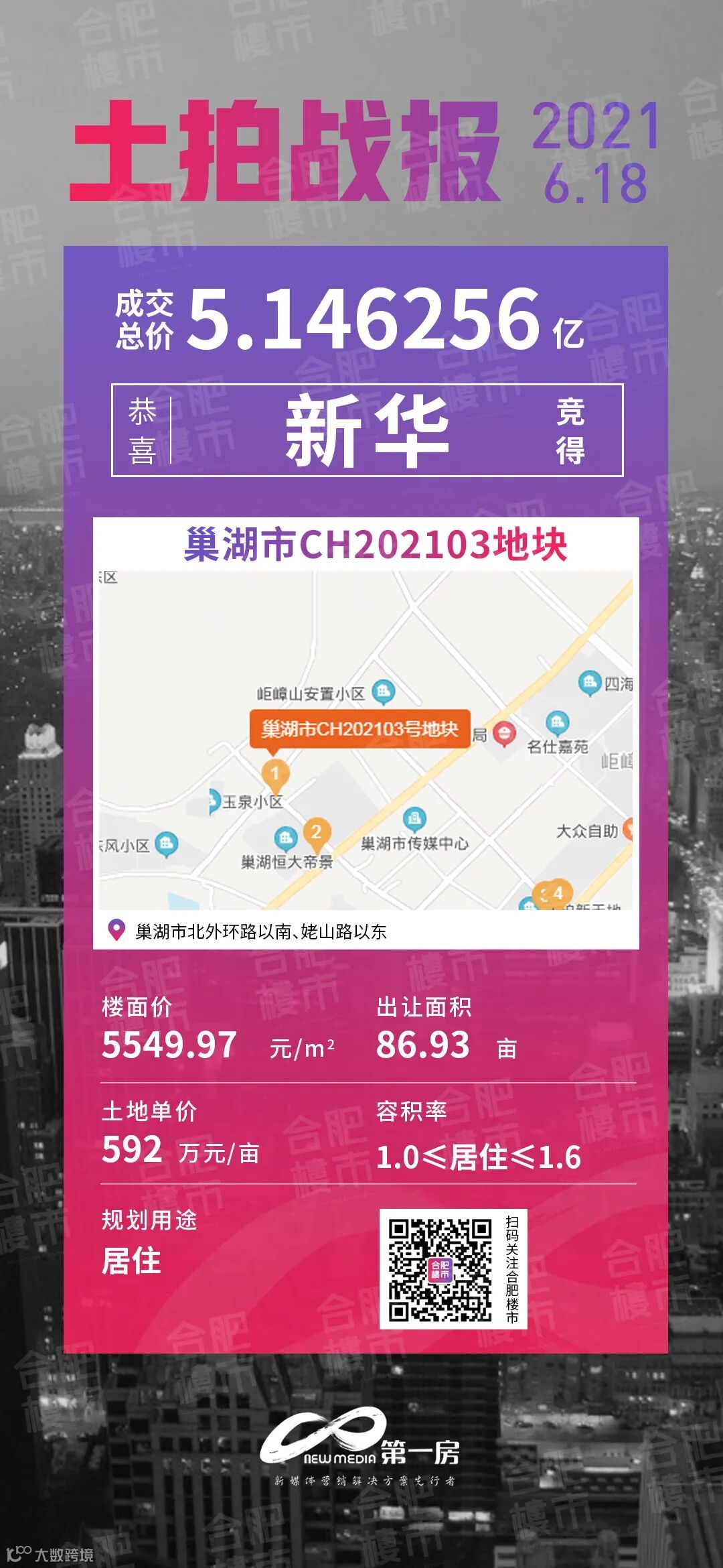 市庐江县、巢湖市、肥东县、长丰县11宗居住用地使用权成功出让,总面积达811.37亩。