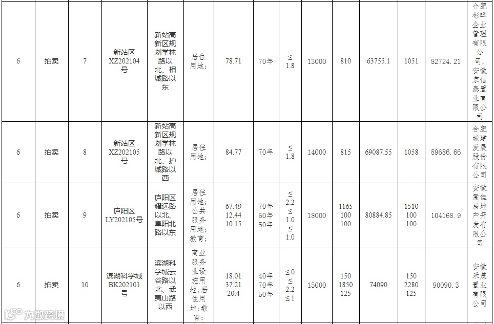合肥14宗土地使用权成功出让,其中12宗为涉宅用地。