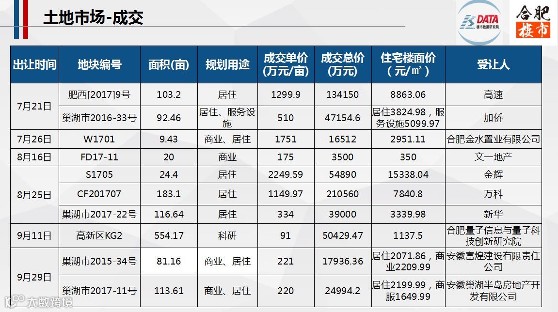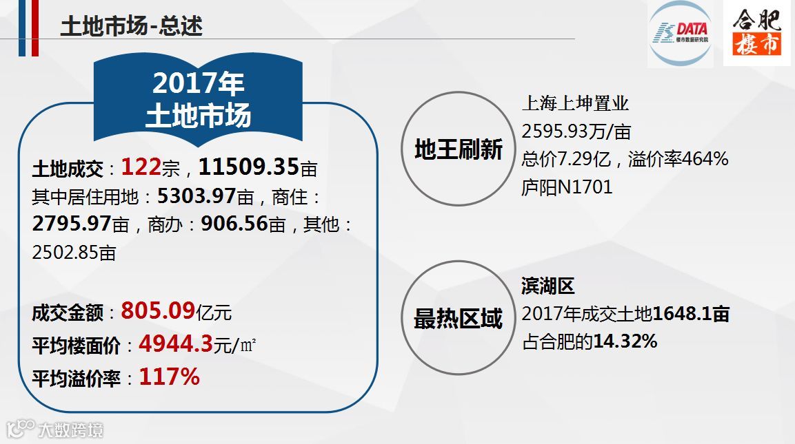 2017年,合肥九区三县、巢湖市和庐江县共成交122宗土地,11509.35亩,揽金805.09亿元。
