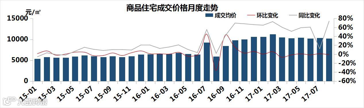 去年7月房价为9226.8元/㎡,环比涨44.65%,同比涨55.15%,其中文一锦门学院里以237套/10958.79元/㎡抬高了均价。