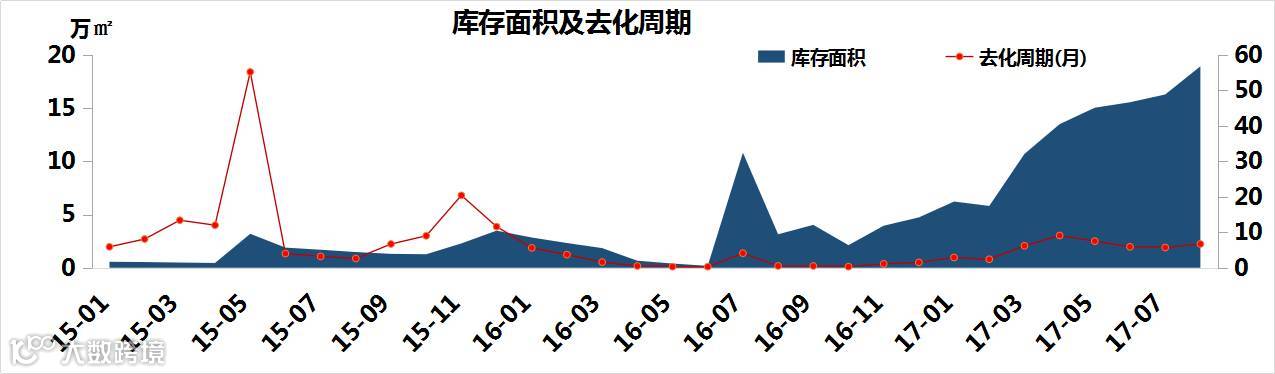 去年10月限购后,库存在逐渐上涨,去化周期也逐渐在延长,截止到8月31日,磨店板块商品住宅库存量为1836套/18.93万㎡,库存面积环比涨16.27%;8月去化周期为6.7个月,比7月延长了1个月。