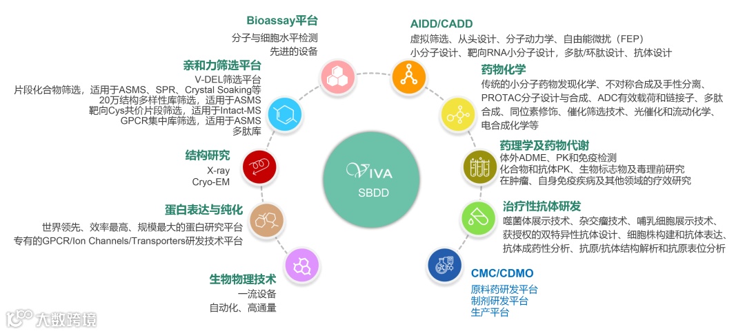 维亚生物(01873. HK)成立于 2008 年,向全球创新药研发企业提供从早期基于结构的药物研发到商业化药物生产的一站式综合服务。凭借在基于结构的药物研发(SBDD)技术领域的领先优势,我们向全球合作伙伴提供新药研究阶段的CRO服务,搭建了X射线蛋白晶体技术、冷冻电镜技术(Cryo-EM)、DNA编码化合物库技术(DEL)、亲和力质谱筛选技术(ASMS)、表面等离子共振技术(SPR)、氢氘交换质谱技术(HDX-MS)、AIDD/CADD等多个先进技术平台,并有资深药物化学家与药物发现生物专家领军的团队提供药物设计、药物化学(H2L,LO)、化合物合成、化学分析及纯化、公斤级放大及多肽合成及相应的生物活性测试服务。通过子公司朗华制药,我们提供从临床前开发到商业化生产的一站式CMC/CDMO解决方案。同时,我们专注于发现、投资高潜力生物医药初创公司,以独创的技术服务换取股权(EFS)的商业模式,解决未满足的临床需求。