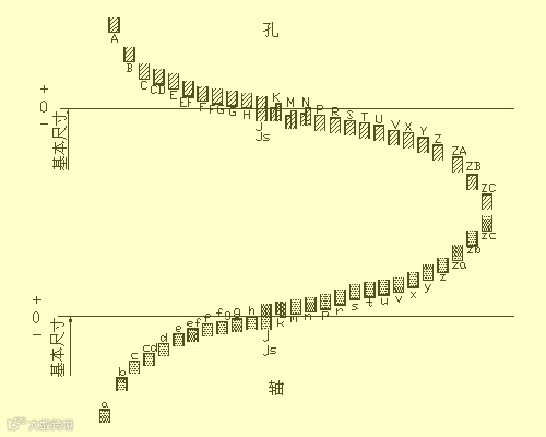基本偏差指确定公差带相对于零线位置的上或下偏差(靠近零线者)。公差带在零线上方时,基本偏差为下偏差;反之则为上偏差。基本偏差共28个,用拉丁字母表示,大写代表孔,小写代表轴。