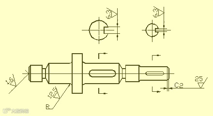 如图中所示的表面粗糙度为Ra6.3的右轴肩,被选为长度方向的主要尺寸基准,由此注出13、28、1.5和26.5等尺寸;再以右轴端为长度方向的辅助基,从而标注出轴的总长96。