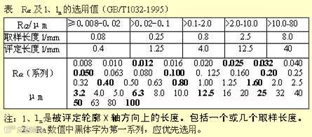 在取样长度内,轮廓偏距绝对值的算术平均值。Ra的数值及取样长度l见表。